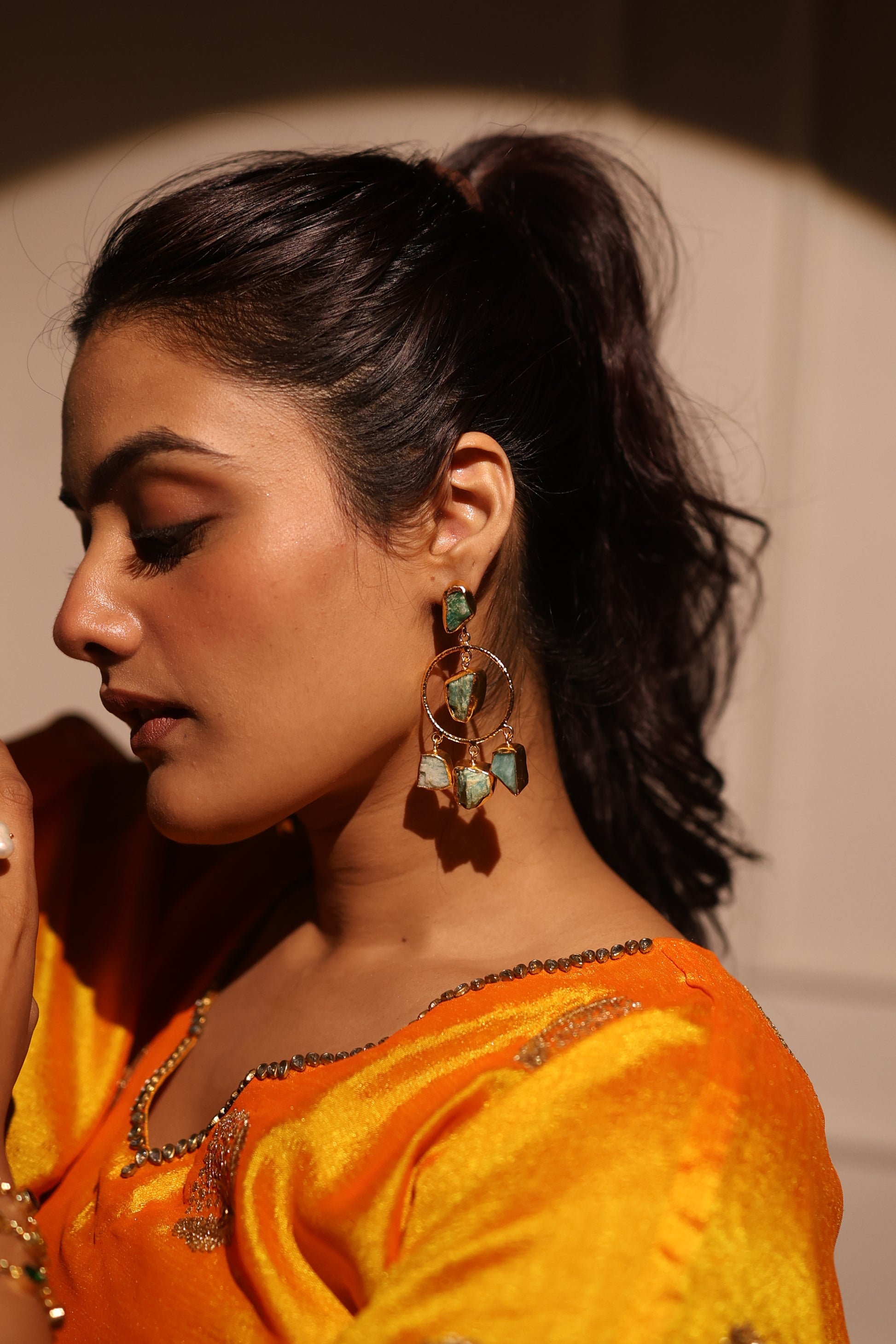 Crafted in a chic dangling design with a hammered golden finish, this set comes in two vibrant stone colors: the soothing greens of Amazonite and the deep purples of Amethyst. One is calm and grounded, the other bold and radiant just like you and your bestie.