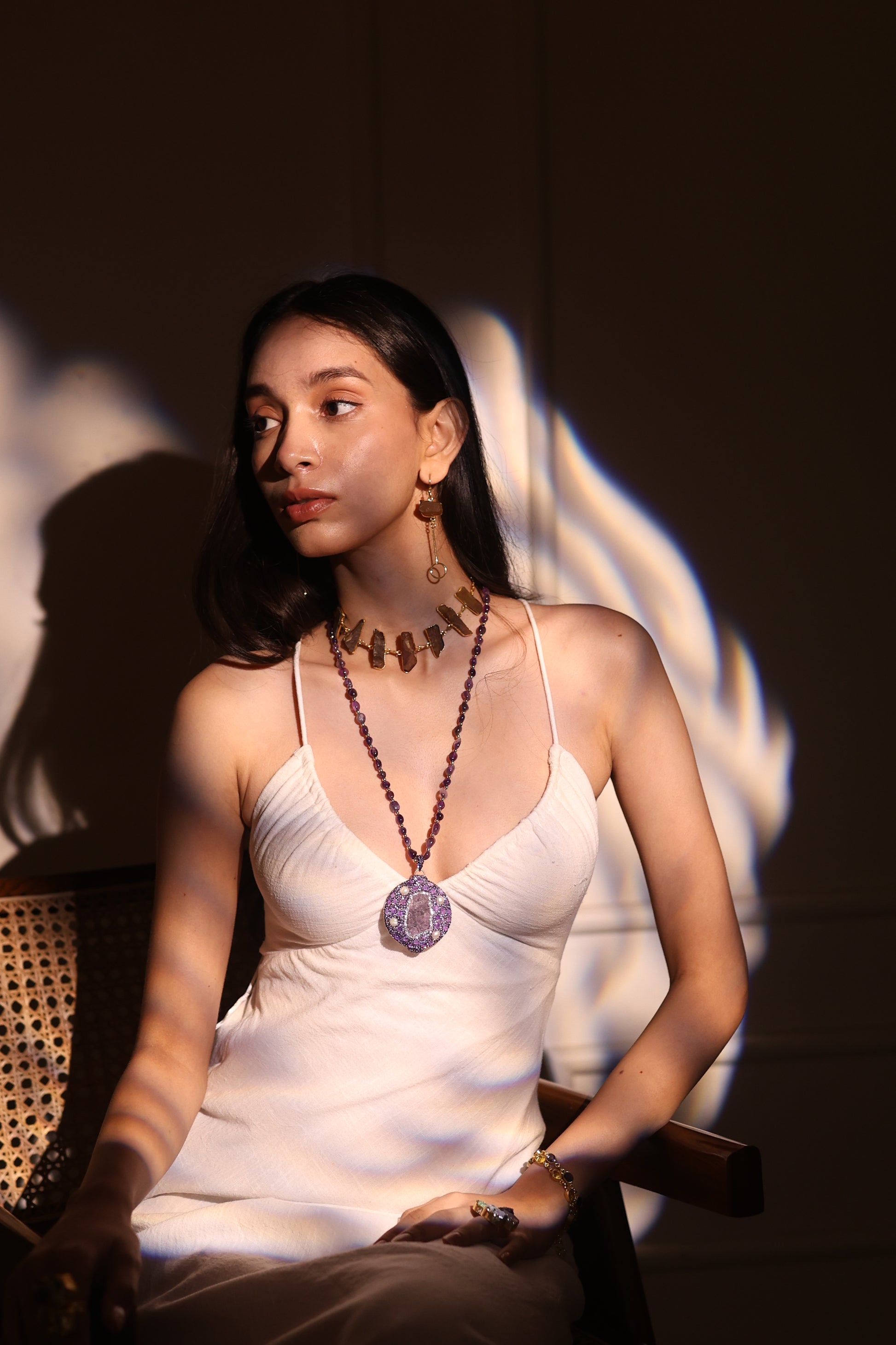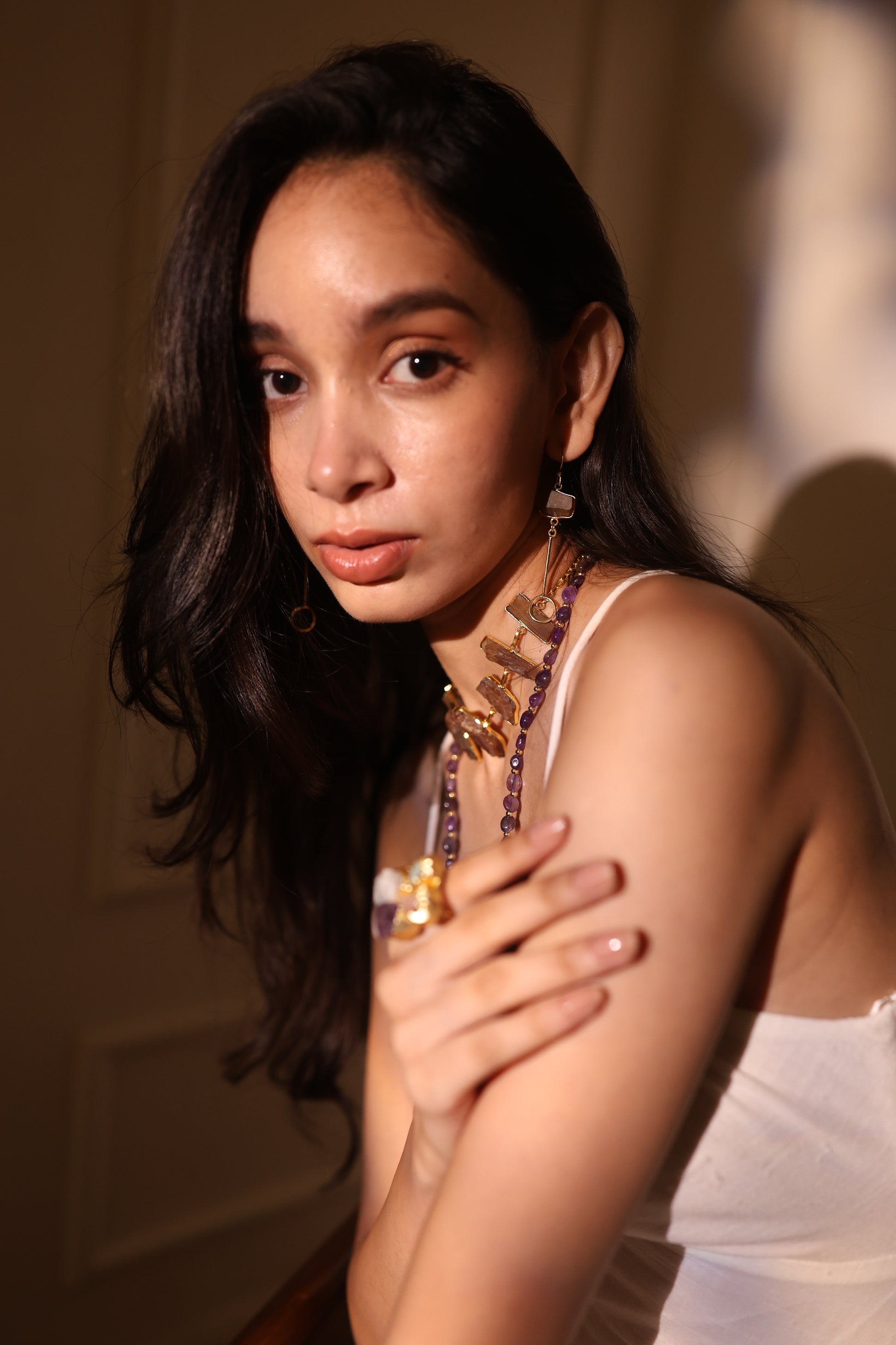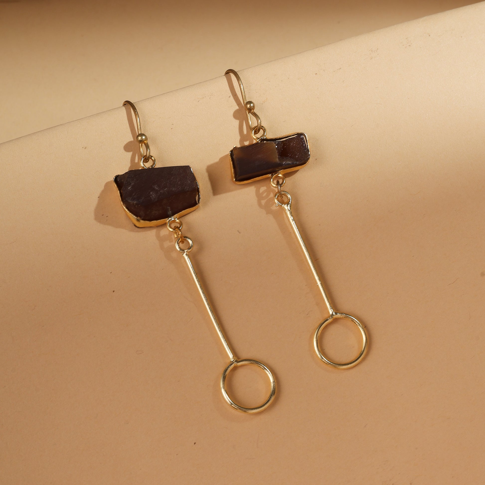 Grounded in nature, yet striking in design the Earthen Grace Set celebrates the beauty of raw stones in their most natural form. The necklace features asymmetrical Jasper stones plated in radiant gold, strung on a delicate chain, while the matching earrings balance the earthy roughness with sleek geometric drops.