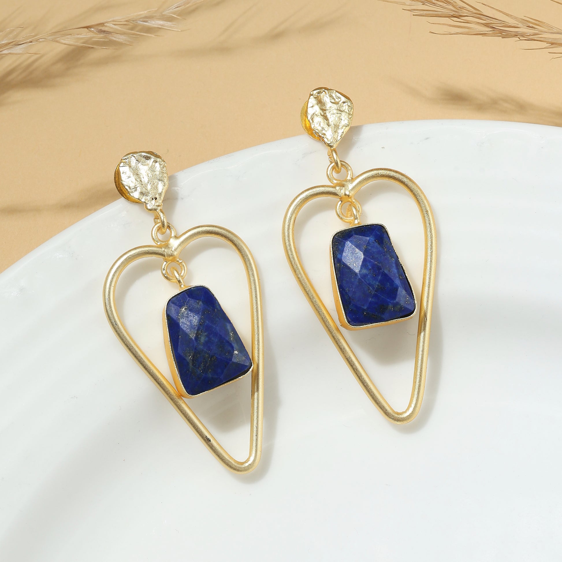The Golden Lapis Heart earrings are a stunning blend of elegance and depth. These heart-shaped earrings feature a rich, golden frame that beautifully encircles a vibrant lapis stone at the center. The deep blue hue of the lapis stone, known for its calming and mystical qualities, contrasts perfectly with the warm glow of the gold, creating a striking and timeless piece. Ideal for both everyday wear and special occasions, these earrings symbolize love, wisdom, and strength, making them a perfect addition to any jewelry collection.