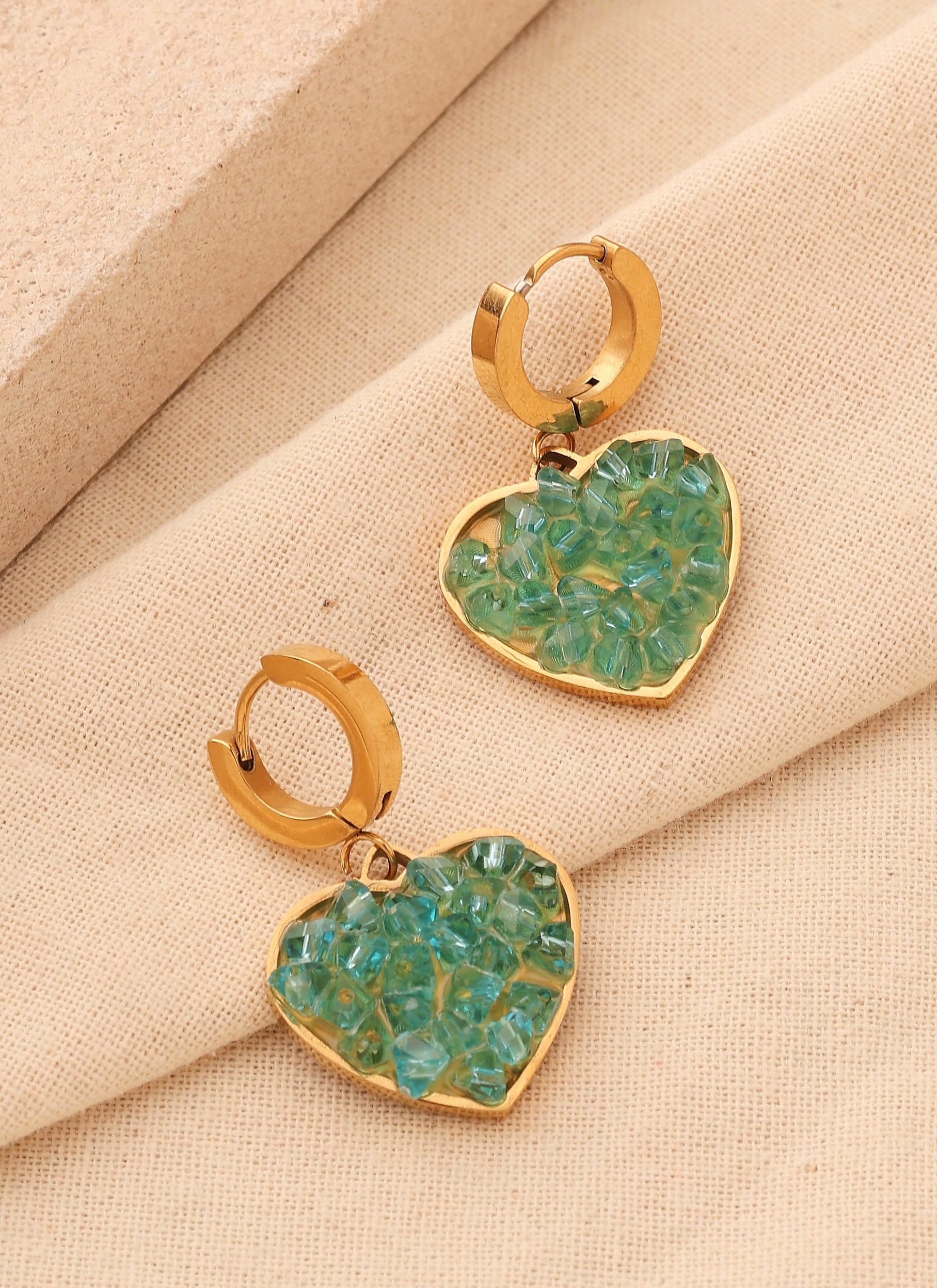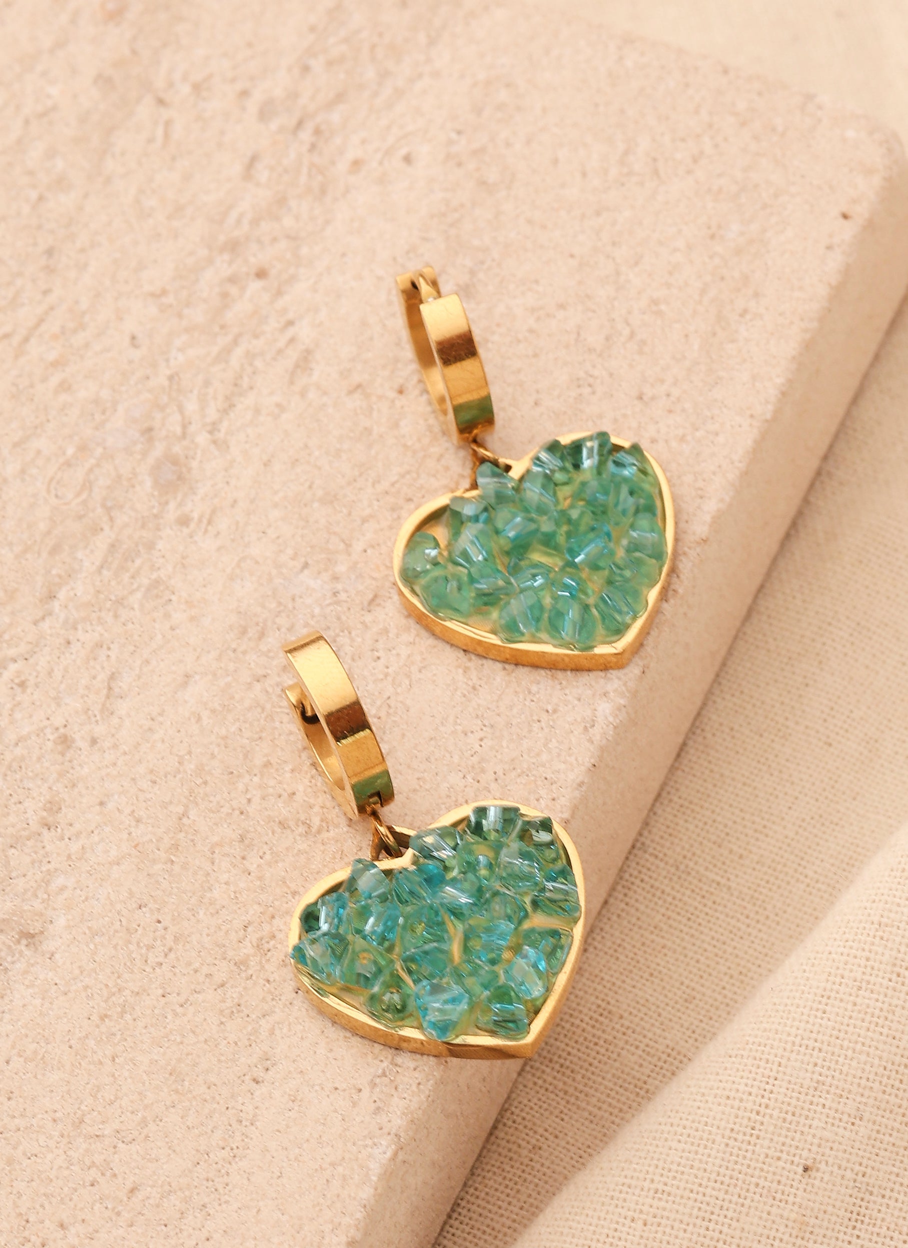 A curation crafted for the woman who loves to glow in her own shade of magic. The Green Love Trio brings together three stunning heart-inspired designs each one rich in texture, detail, and charm. From crushed-stone hearts to sculpted golden leaves and glossy emerald drops, this set captures the timeless calm of green with a modern, romantic twist.