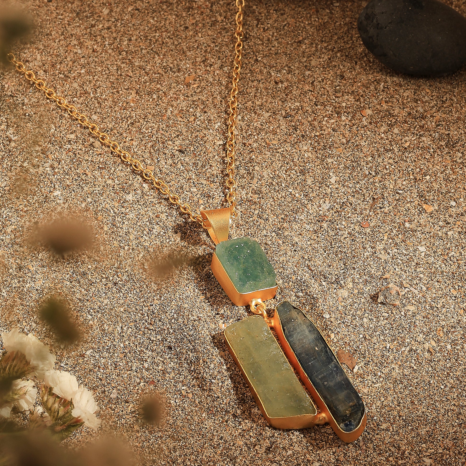 Elevate your everyday charm with the Neckpieces Trio a curation of raw stones, golden textures, and statement silhouettes. Each piece is thoughtfully handcrafted to bring effortless elegance to every outfit, whether you’re styling a sundress or a night-out look. From bold geometrics to soft blush tones, this trio lets you pick a mood and wear your story.