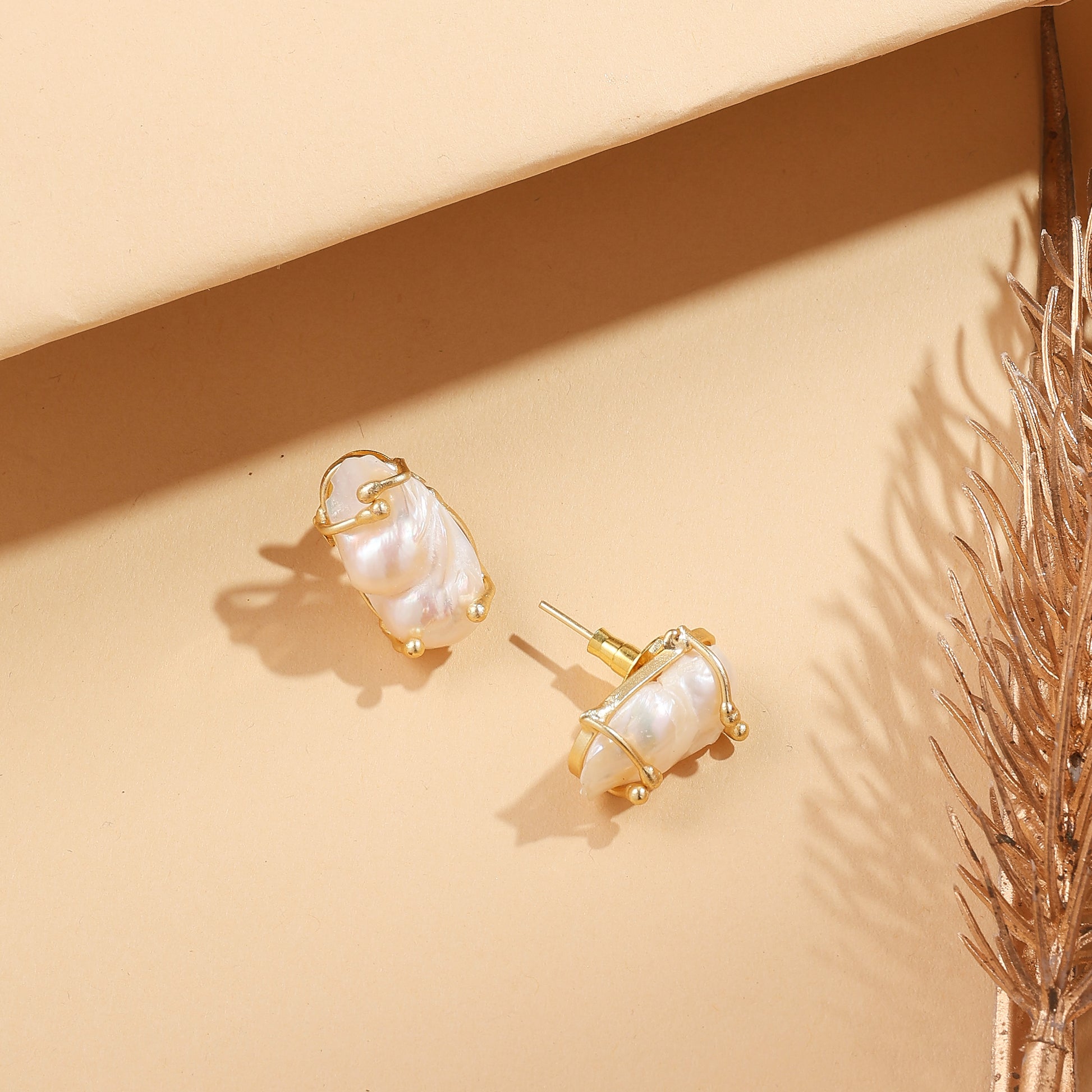 The Pearl Whisper Earrings embody understated elegance with a modern twist. Featuring naturally shaped freshwater pearls delicately set in golden prong frames, these earrings celebrate the beauty of organic imperfections. Each pearl reflects soft iridescence, making every pair truly unique.