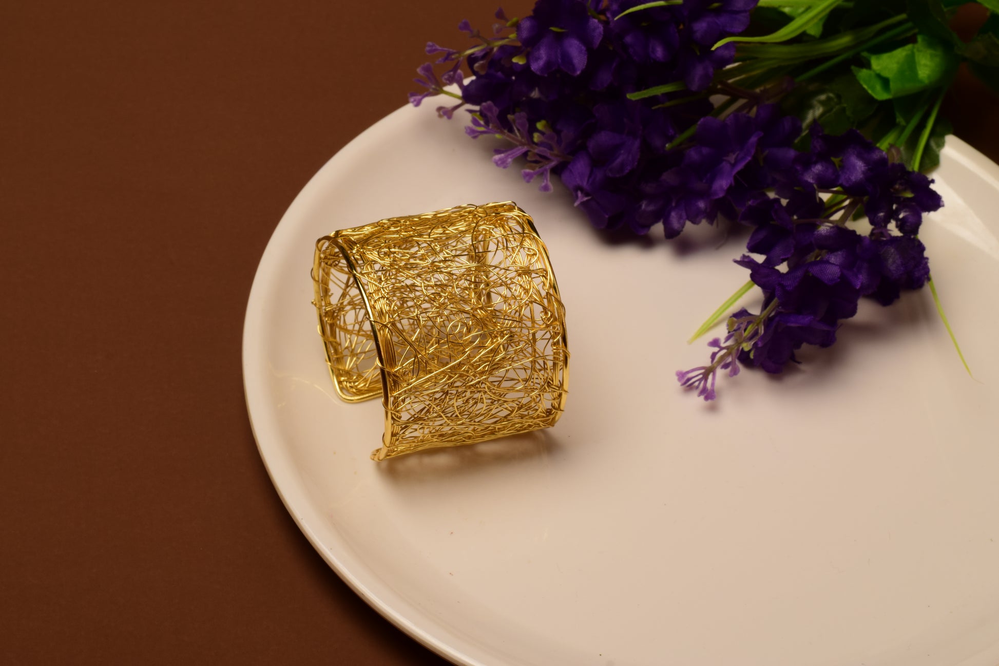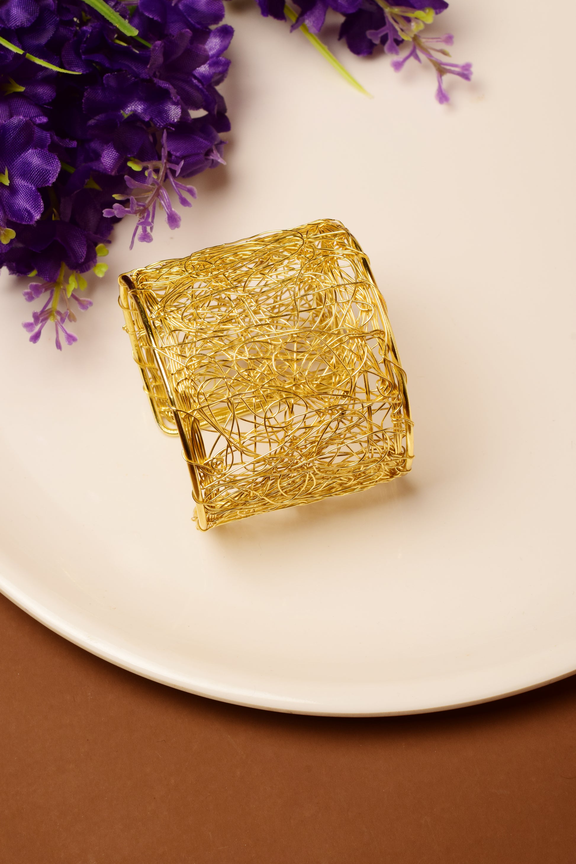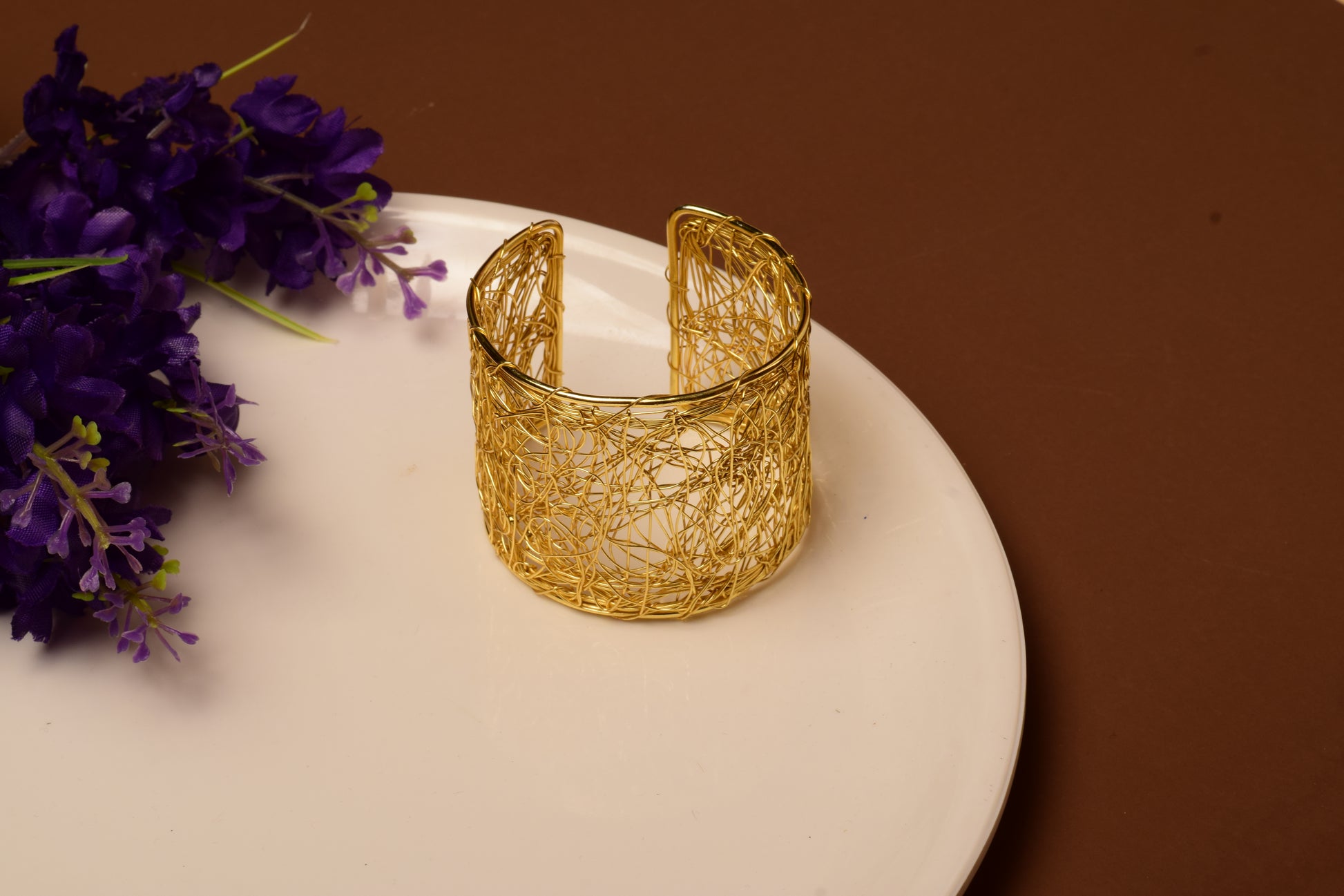 The Wild Weave Cuff is a stunning handcrafted piece made from high-quality brass and finished in a luxurious matte-gold polish. Its design features an organic, free-flowing web of hand-twisted wires imperfect, raw, artistic, and effortlessly stylish.